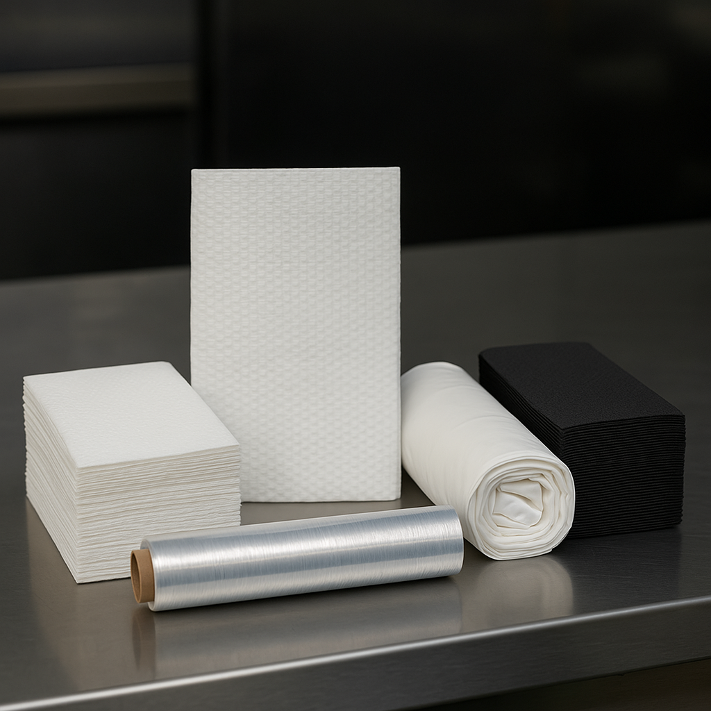 Our Hospitality / Catering range is intended for restaurateurs, hoteliers, caterers, communities, packagers, etc. We offer a wide choice of eco-responsible products for CHR/HPA professionals : table napkins, food cling film, kitchen towels, bath linen kits, towels, sheets and bath mats.